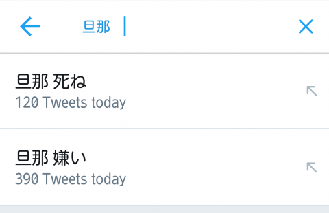 ツイッターで旦那関連の検索すると旦那への誹謗中傷ツイート山ほど見つかるよな